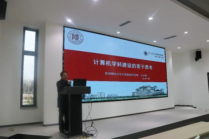 2023年12月15日下午,我院在长安大学北校区明德园创新大厦开展导师培训会议,陕西师范大学计算机科学学院王小明教授应邀作题为“计算机学科建设的若干思考”的报告。出席本次会议的有信息工程学院院长安毅生、全体研...