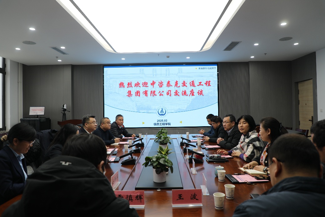 2月21日下午中咨泰克交通工程集团有限公司党委书记、执行董事,长安大学信息工程学院校友谭小刚,党委委员、副总经理张涛,智慧产业研究院总经理彭敏、副总经理安泽萍,西北区域办事处主任连文谦等一行5人到访信息工...