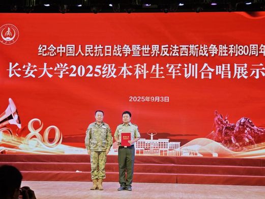 9月3日,长安大学2025级本科生军训合唱展示活动在北校区长安文化艺术中心大礼堂举行,我院八营代表队用琵琶铿锵,铮铮歌声,合唱《弹起我心爱的土琵琶》《敢当》,以旋律质朴优美与铁血报国豪情兼备,以总分第一名的...