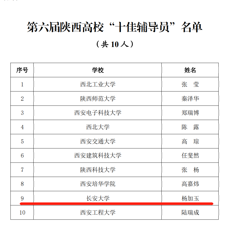 近日,由中共陕西省委教育工委举办的第六届陕西高校“十佳辅导员”“优秀辅导员”推选展示结果揭晓。1月14日,中共陕西省委教育工委、省教育厅下发了《关于表彰第六届陕西高校十佳辅导员和优秀辅导员的通报》(陕教工...