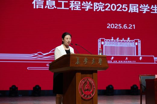 安毅生总结了学院近年的成就,回顾了毕业生入学以来的点点滴滴与奋斗成果,嘱托他们以“坐言起行”践初心、以“笃学创新”应万变、以“信达天下”守本心,勇敢奔赴祖国山海,做“眼里有光”的信息少年。
