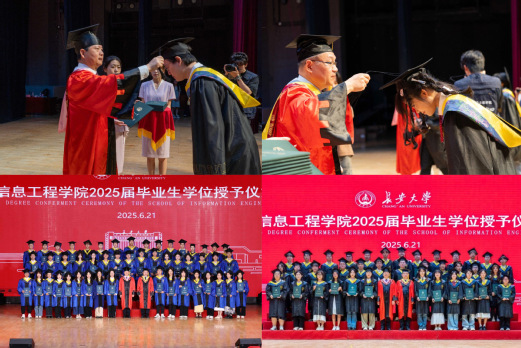 学位授予仪式开始,学院副院长明洋、王威分别主持本科生与研究生学位授予仪式。学校副校长黎开谊、院长安毅生为毕业生拨穗并授予学位证书,同学们依次上台并合影留念。