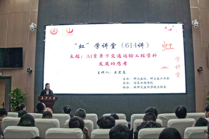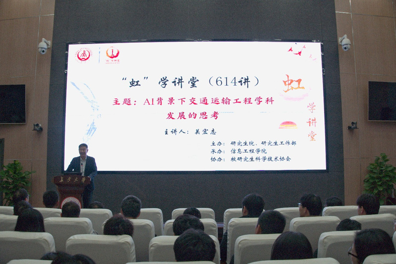3月14日下午,由研究生院、研究生工作部主办,我院承办,校研究生科学技术协会协办的“虹”学讲堂第614讲在北校区师生服务大厅第二报告厅顺利举办。应我院副院长徐志刚教授邀请,北京工业大学建工学院教授、博士生导师,我校知名校友关宏志为我校师生作了题为“AI背景下交通运输工程学科发展的思考”的报告,运输工程学院院长葛颖恩、运输学院陈红教授、电子与控制工程学院副院长路庆昌等专家领导出席了本次讲座,我院党委副书记郭咏梅担任讲座主持,相关学院共160余名师生参加讲座。