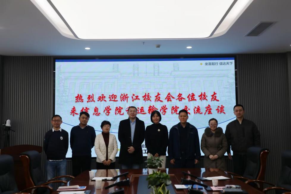 信息工程学院副院长王威和运输工程学院副院长柏强分别介绍了各自学院的历史沿革、人才培养、科学研究、师资队伍、国际交流、学生就业及校友工作等方面取得的成就和进展,并重点介绍了人工智能学科和计算机学科在服务交通科技强国和建设交通人才培养中的突出成效,同时对浙江校友的来访表示欢迎。