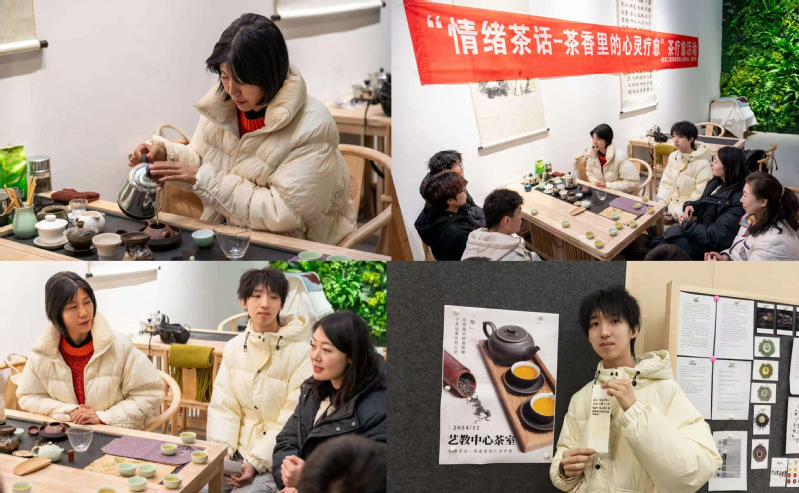 为呵护学生心理健康,传承和弘扬中华茶文化,丰富校园文化生活内涵,12月25日下午,我院在鸿渐园“一站式”学生社区艺术工作坊举办“书记下午茶”茶香心灵疗愈活动。艺术教育中心副主任张红,学院党委副书记、纪委书记、副院长陈沛,党委副书记郭咏梅出席。学院二级心理辅导站副站长刘洁怡,各年级学生代表参加。