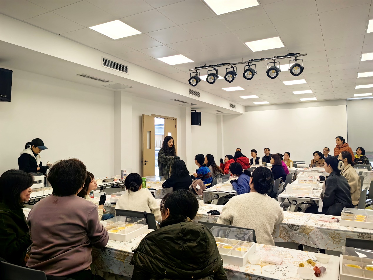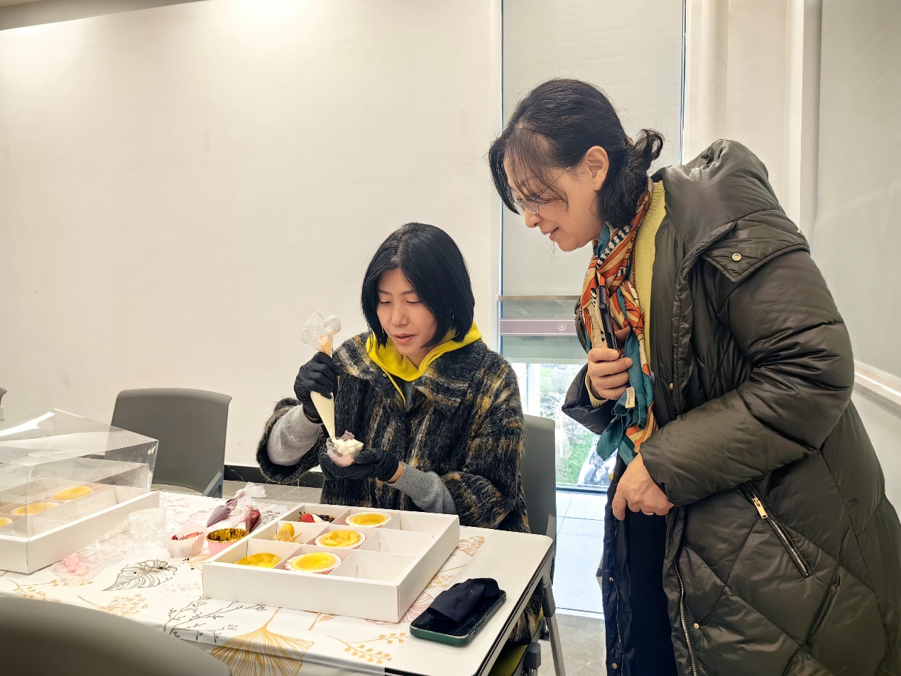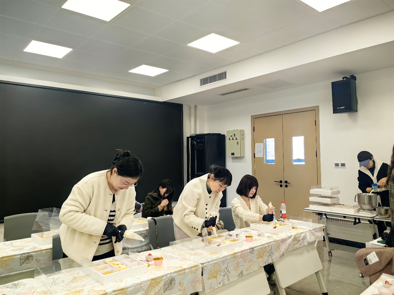 活动现场温馨浪漫,专业糕点师为女教职工们演示了点心制作和装饰的流程与技巧。平日里专注科研讲台的教师们化身"甜点艺术家",发挥艺术想象力,在奶油的馥郁香气中,将新鲜水果、巧克力、鲜花与糖霜等巧妙组合,创作出各具特色的点心,最后还在点心盒上装饰了写有"女神节快乐"的卡片。大家互帮互助、笑声盈盈,活动现场洋溢着轻松愉悦的节日氛围。