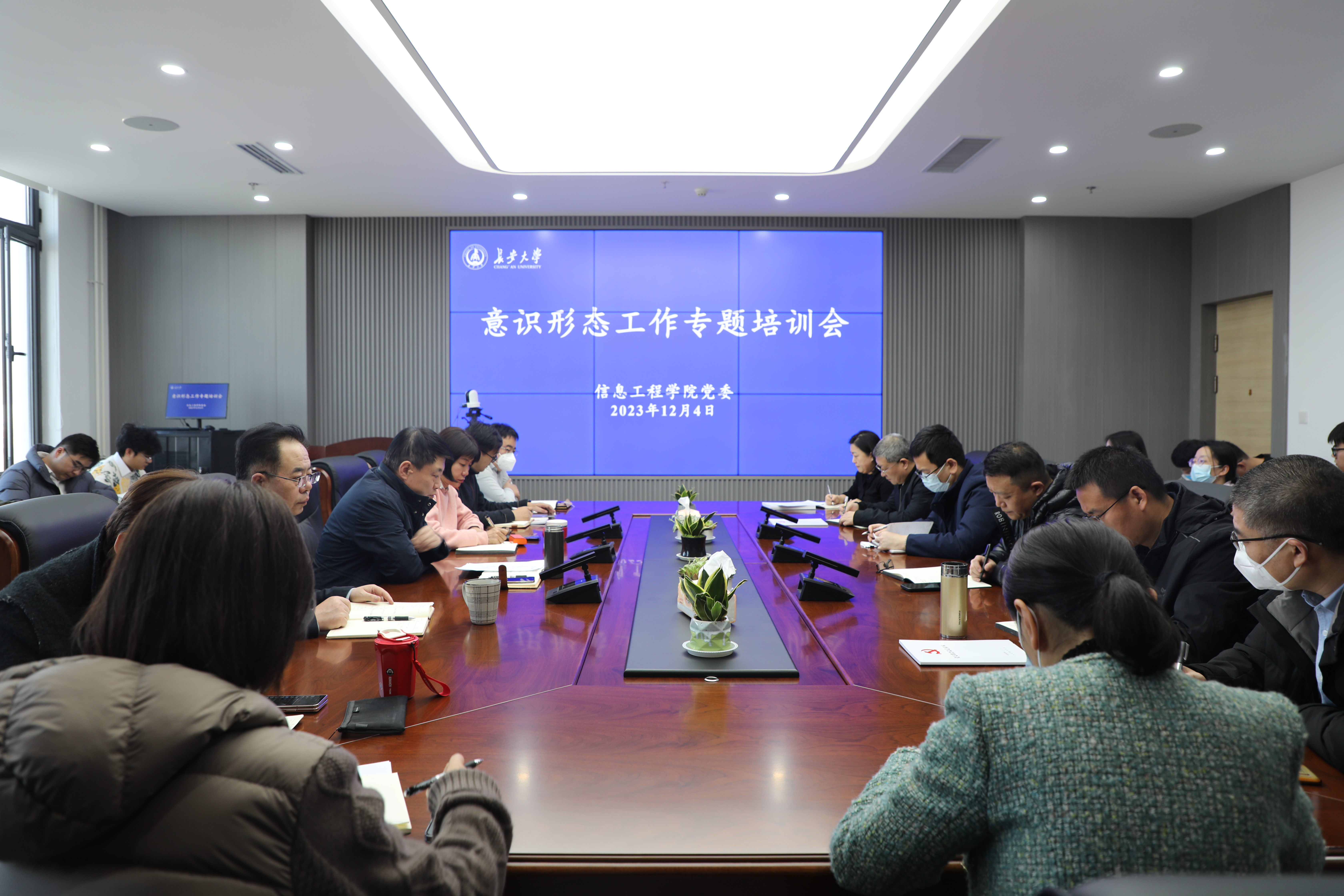 2023年12月4日,信息工程学院党委在学院会议室组织开展意识形态工作专题培训。学院党委书记胡予欣、党委副书记纪委书记副院长杨玉龙、党委副书记陈沛,全体党支部书记和各系部室主任参加培训。
