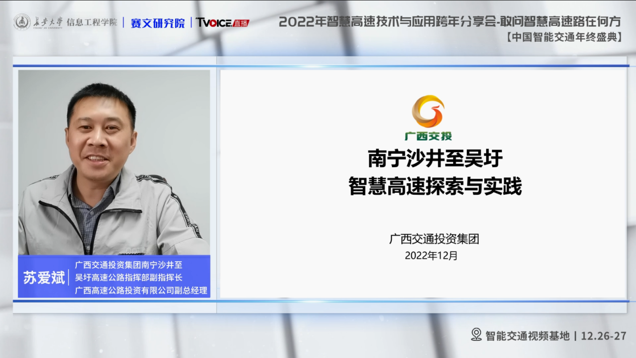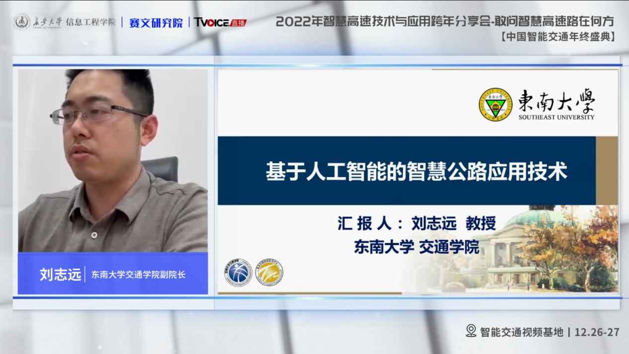 12月27日,由国内智能交通领域知名媒体——赛文交通网和赛文研究院主办,长安大学信息工程学院协办的2022年智慧高速技术与应用跨年分享会——“敢问智慧高速路在何方?”技术论坛在线成功召开,我院副院长徐志刚教授担任该分论坛召集人。此次分论坛邀请了来自国内知名高等院校、科研院所、高速公路业主和研发企业的11位嘉宾作主题发言,他们均是我国智慧交通领域的一线知名专家,对智慧高速的相关理论、关键技术、典型案例和标准法规具有深厚的研究基础和丰富的工程经验。