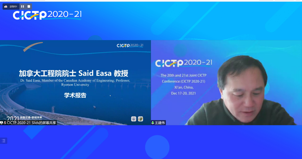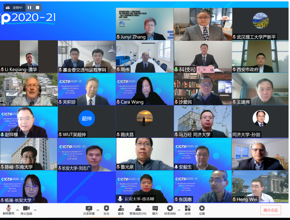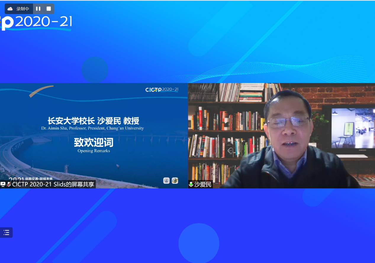 12月17日,由长安大学与海外华人交通协会(COTA)联合主办的CICTP2020-2021国际交通科技年会终于在线上如期举行。此次年会主题为“丝路交通,联结未来”。大会邀请了包括美国工程院、加拿大工程院、日本工程院、中国科学院、中国工程院院士和中国交通运输部、自然科学基金委、行业协会领导,世界著名大学教授等将近300名学者作线上视频报告,为全球交通学者奉献了一场学术盛宴。大会开幕式由长安大学副校长赵祥模教授主持。