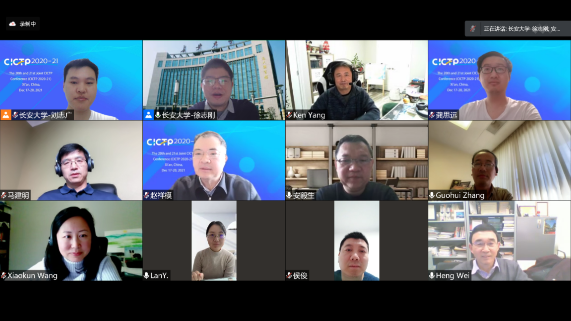 2022年1月29日,CICTP2020-21国际交通科技年会的总结会议在线上成功举行,长安大学副校长赵祥模做大会总结报告,海外华人交通协会(COTA)第20和21任主席、美国伦斯里尔理工大学王晓坤教授,CICTP2020-21执行委员会主席、美国辛辛那提大学魏恒教授,美国夏威夷大学张国惠教授,美国俄勒冈州立大学王海忠教授,COTA第22任主席、美国得州交通厅马建明博士,长安大学信息工程学院院长安毅生及部分参与会议组织筹备的教师参加了此次会议。会议由长安大学信息工程学院副院长徐志刚主持。