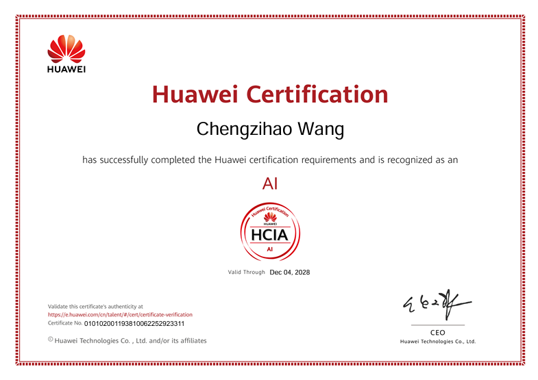 我院部分学生取得的华为认证工程师(AI方向)HCIA-AI证书