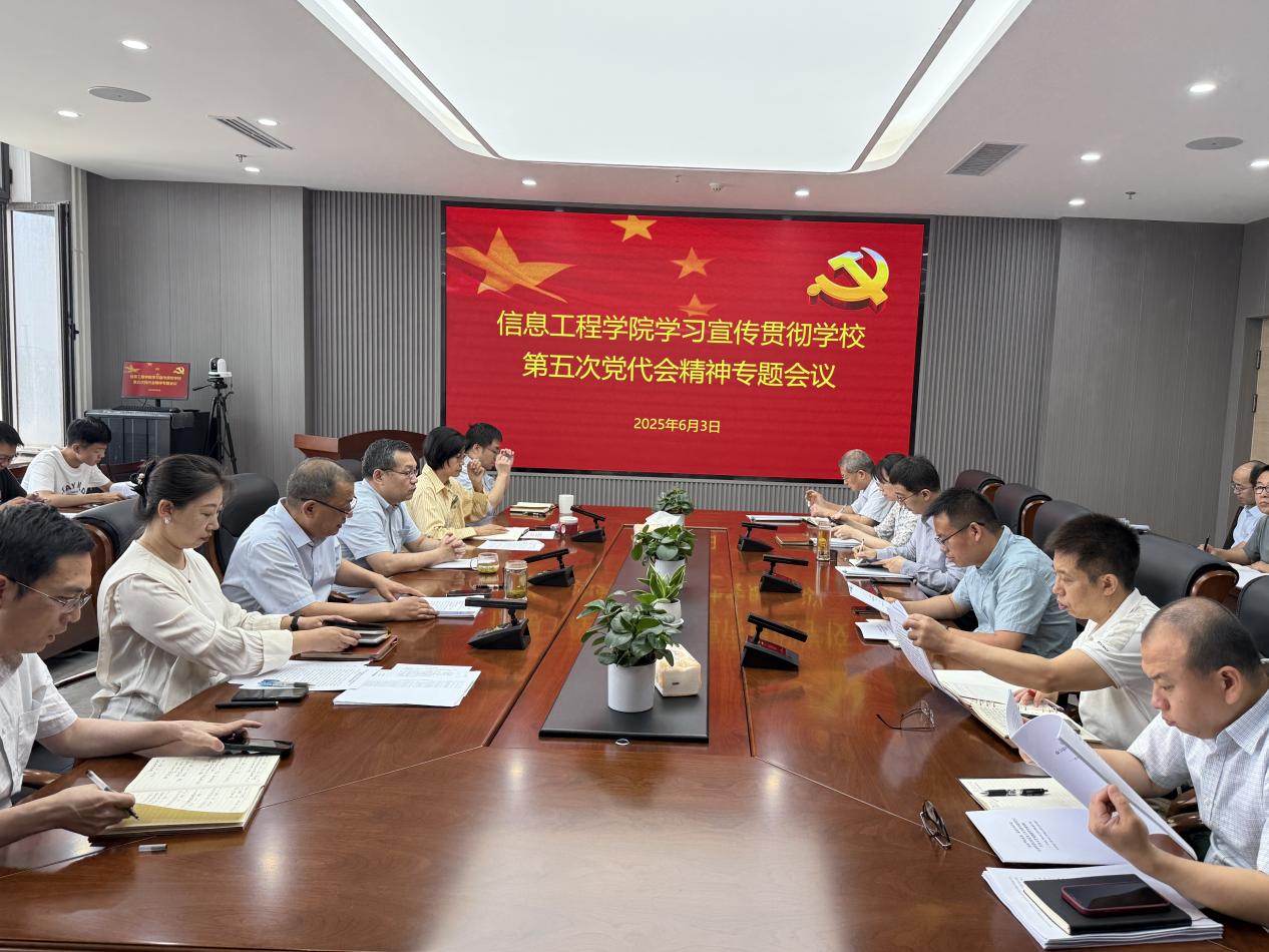 6月3日,信息工程学院在学院546会议室召开党委会扩大会议,学习宣传贯彻学校第五次党代会精神专题会议。学院全体领导班子成员、全体党支部书记参加会议。会议由学院党委书记陈俊鹏主持。