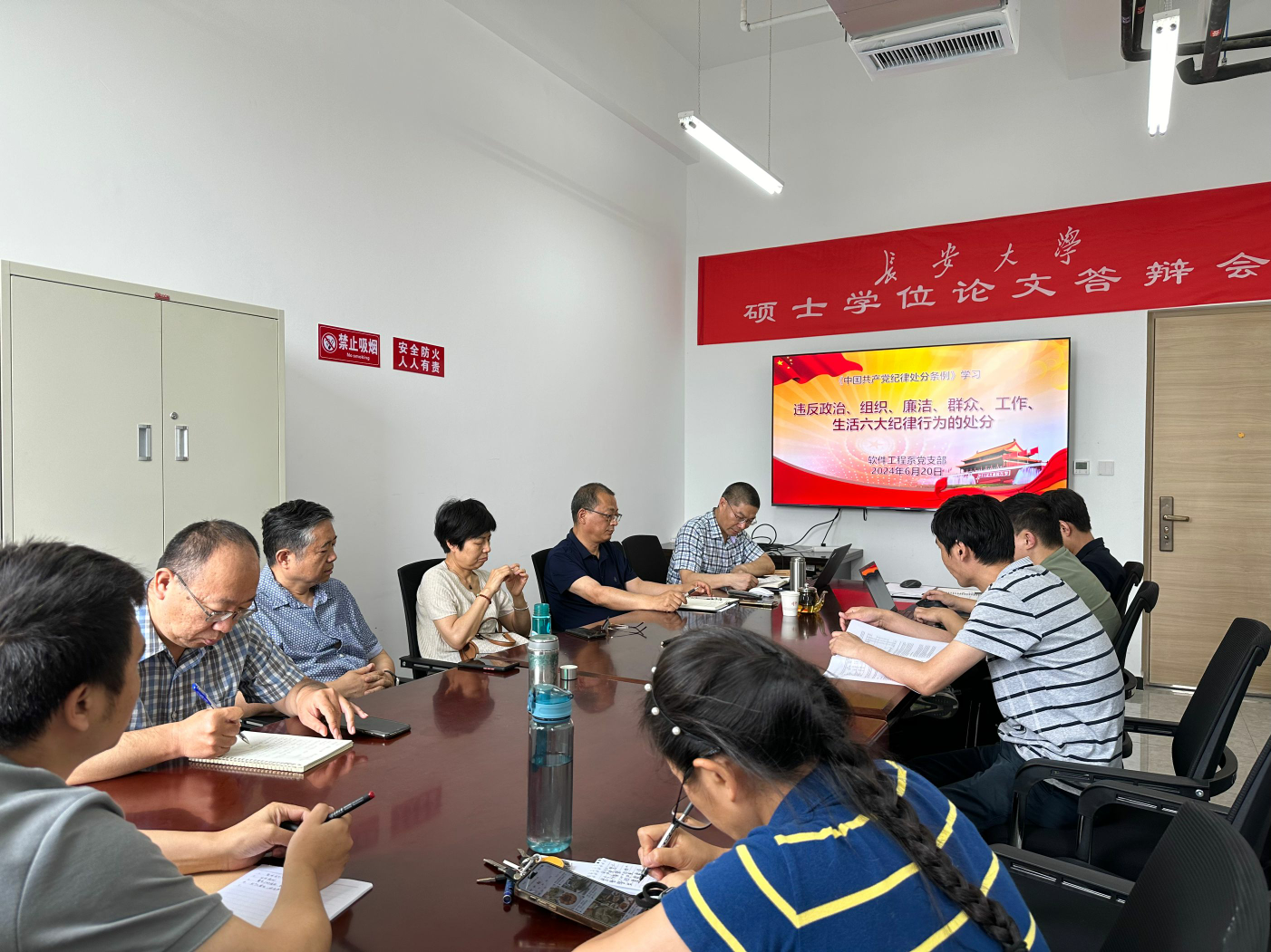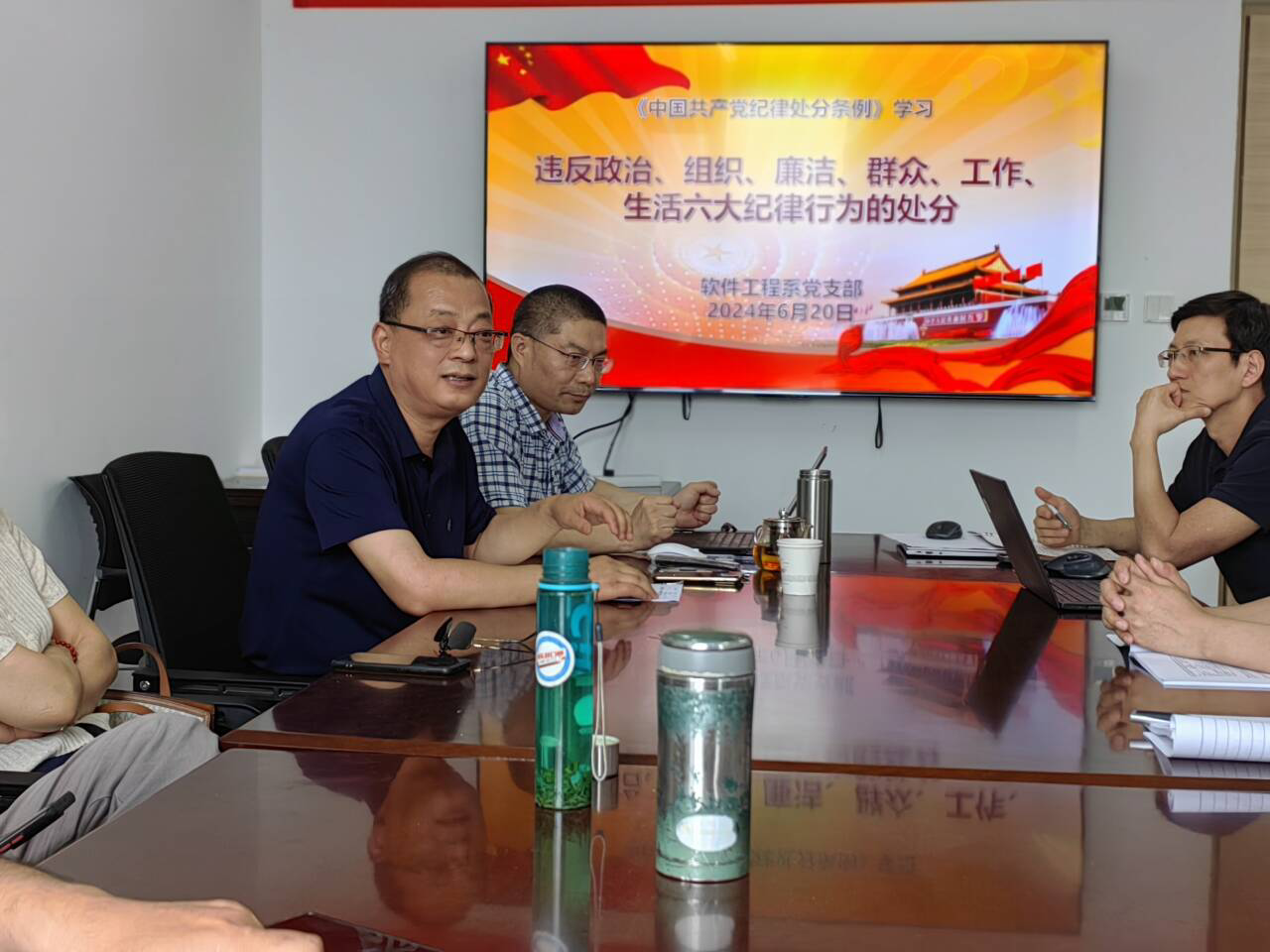 6月20日,软件系党支部召开党纪学习教育主题党日活动,持续深入学习《中国共产党纪律处分条例》。活动由党支部书记荆树旭主持,学院党委书记陈俊鹏参加活动。