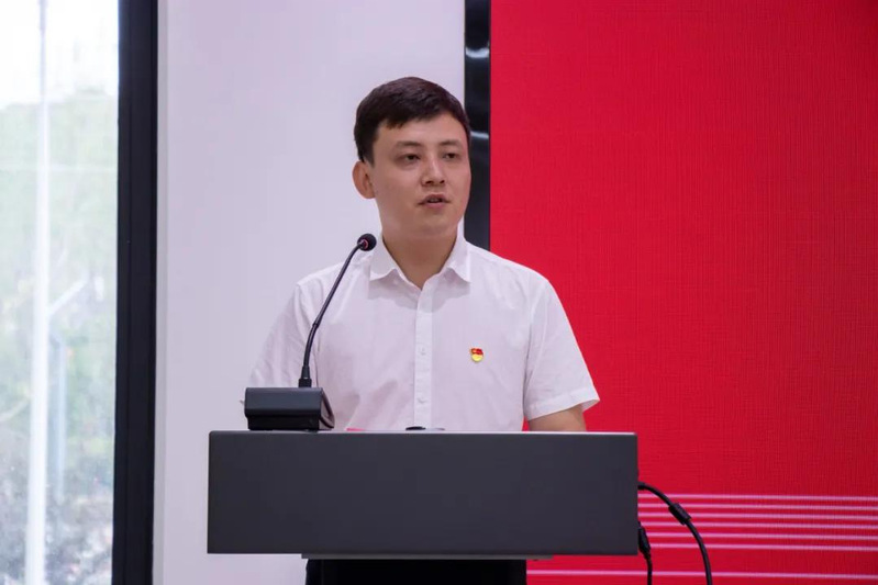 预备党员代表赵彬发言,表示将用实干践行使命、用奉献诠释忠诚,以实际行动为党旗增光添彩。