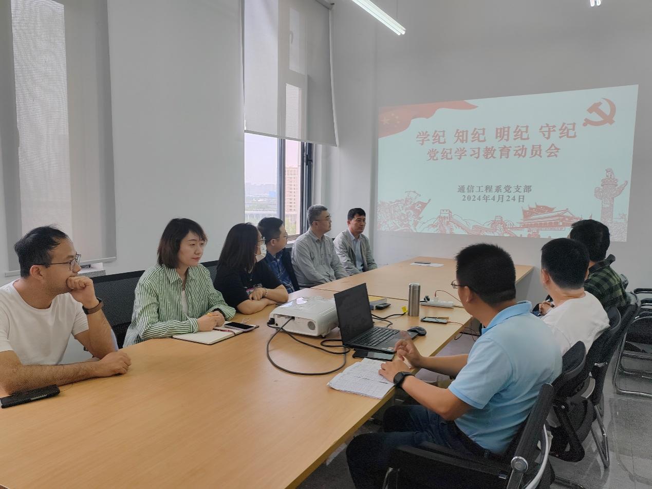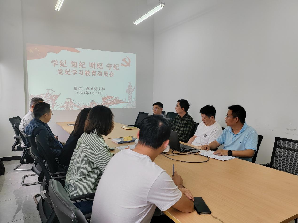 为深入学习贯彻《关于在全党开展党纪学习教育的通知》的要求,4月24日下午,通信工程系党支部召开党纪学习教育动员会,会议由党支部书记罗向龙同志主持。