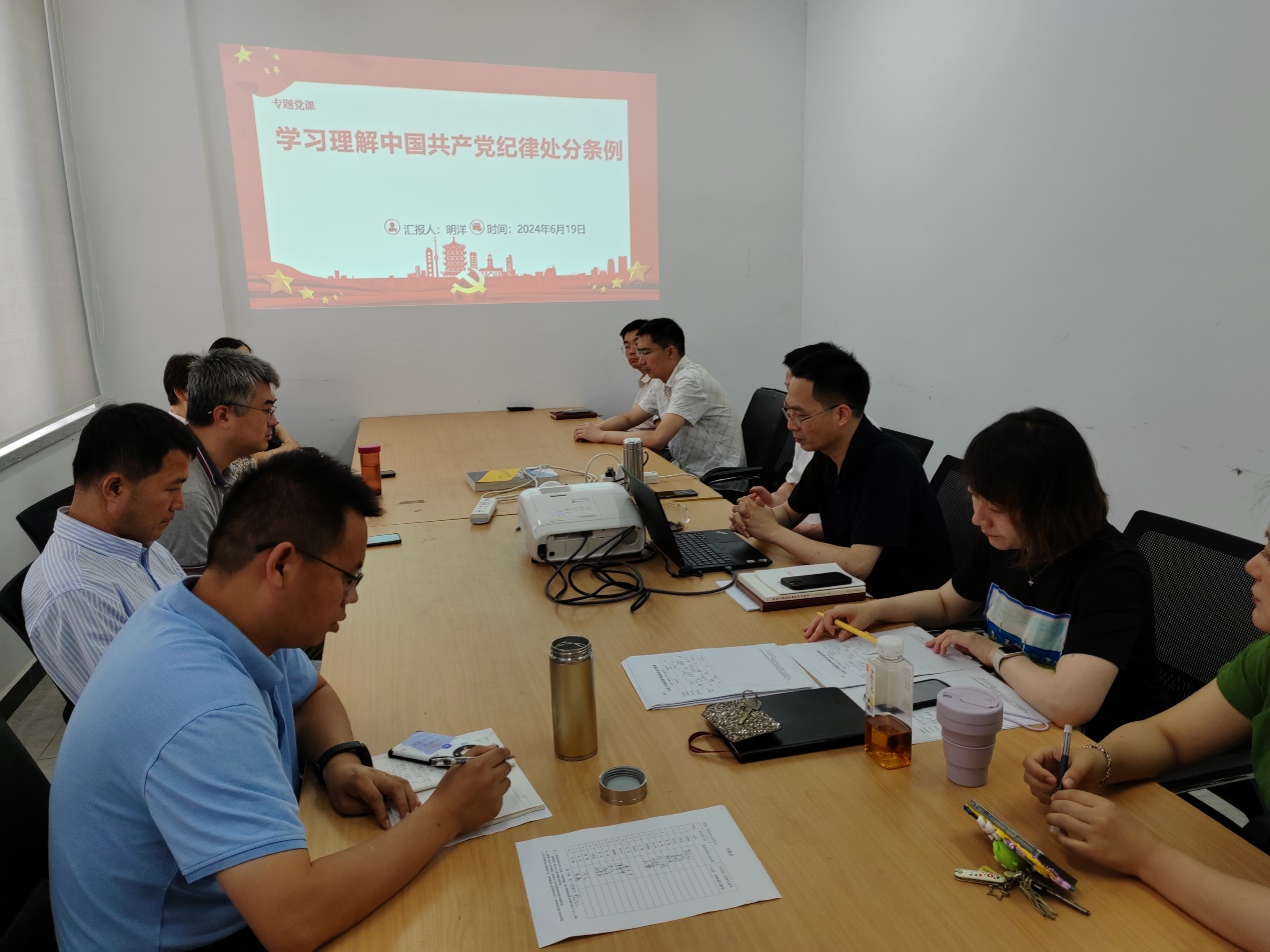 6月19日,通信工程系党支部召开党纪学习教育主题党日活动,活动由党支部书记罗向龙主持,学院副院长明洋参加,党支部全体党员对《中国共产党纪律处分条例》进行了集中学习。