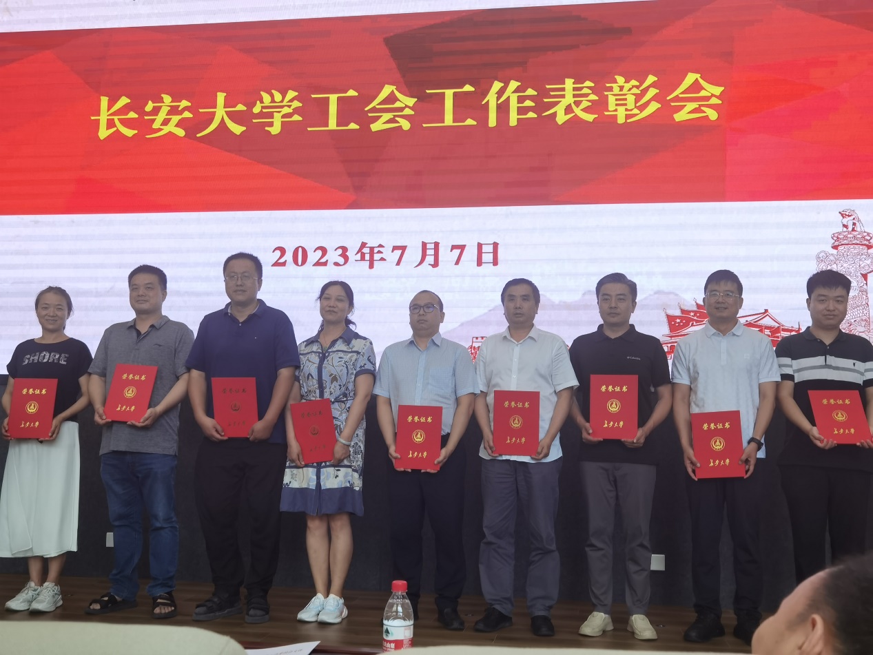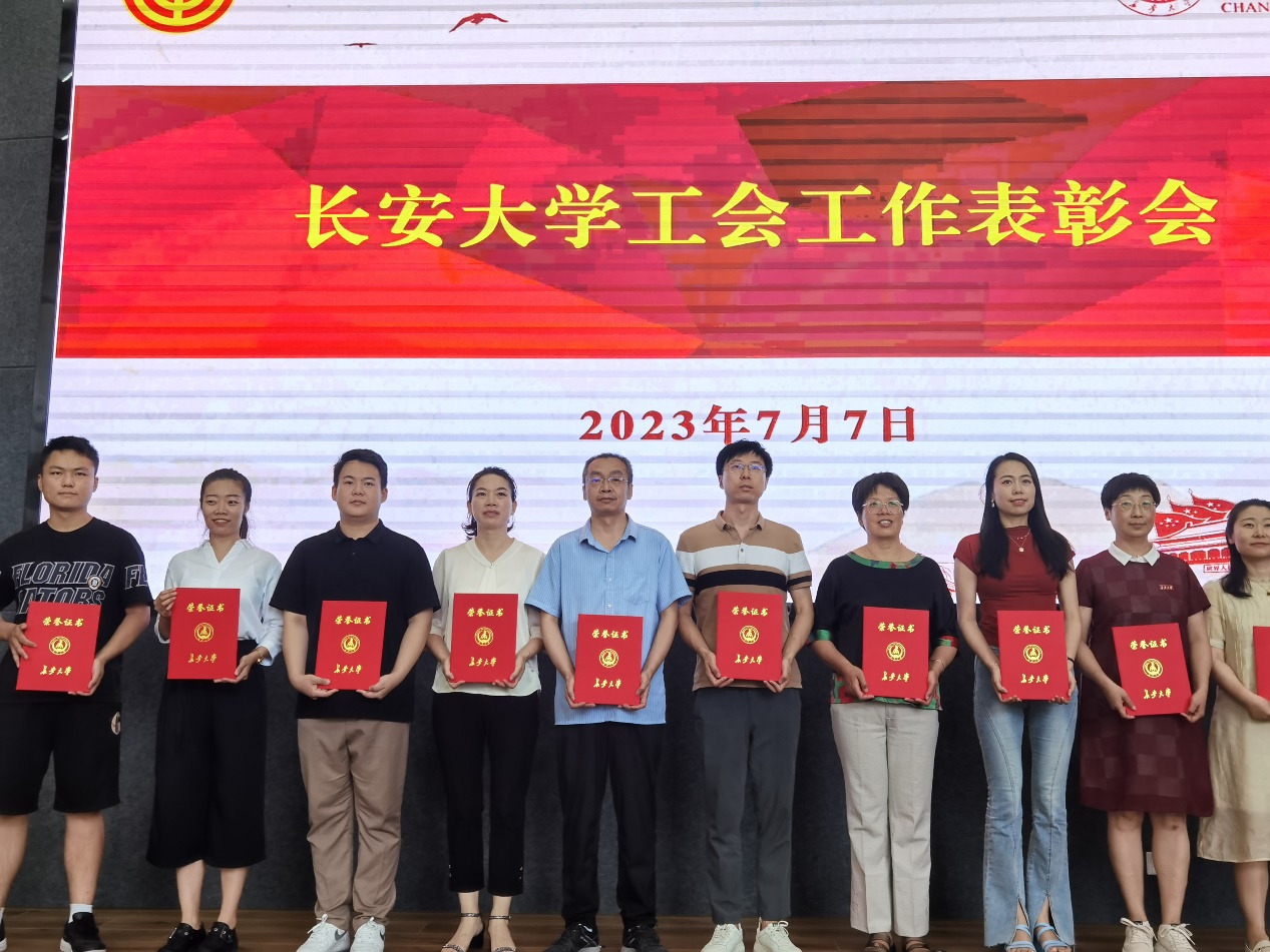 2023年7月7日,校工会在渭水校区举行了长安大学工会工作表彰会。我院王波老师和李钢老师分别获得“2022年度优秀工会干部”和“2022年度工会活动积极分子”的称号。