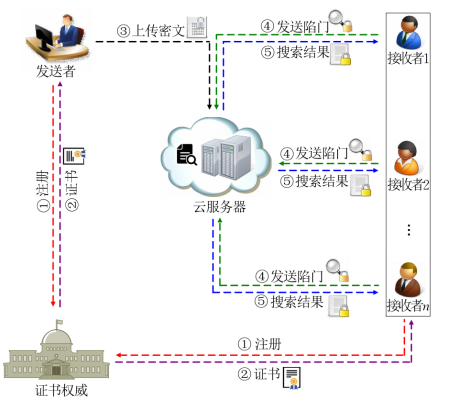 可搜索加密是目前公钥密码学和云存储数据共享研究领域的热点和重点问题。论文利用密钥交换思想和数字签名技术,提出一种多接收者证书基可搜索加密方案,减少发送者的计算代价和云服务器的存储代价,实现发送者身份信息隐私保护,提高云服务器的检索效率,符合云存储环境的实际情况,具有更强的实用性和应用前景。