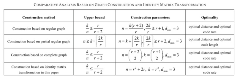 具体地,运用组合数学中的区组设计,构造最小距离和码率均能满足最优边界条件的最优二元局部修复码,且该构造和其他已有的最优二元局部修复码相比,在码长和码率上表现的更优。进一步地,运用单位矩阵变换的方法,构造可用性为2的最小距离最优和码率最优的二元局部修复码,同时该方法相比其他方法算法复杂度更低。