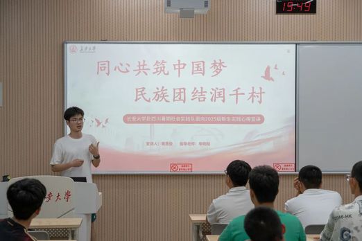 为深入学习贯彻党的二十大及二十届二中、三中全会精神,落实学校第五次党代会部署,推动实践育人走深走实,长安大学赴四川绵阳、凉山“同心共筑中国梦,民族团结润千村”实践队伍于9月14日在WX2207教室面向2025240204班与2025240403班新生召开“实践归来话成长”主题宣讲会。本次活动旨在通过分享真实的实践故事,引导同学们在社会大课堂中坚定理想信念、锤炼意志品格、增长能力才干。