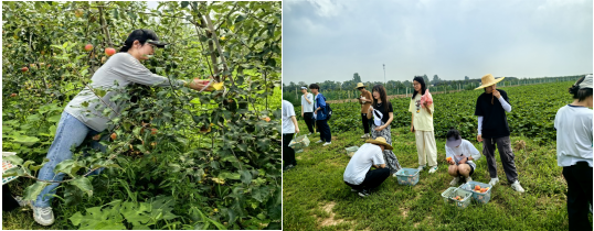 随后的果园采摘环节,在劳动指导老师讲解完采摘水果要点后,学生们就提着竹篮穿梭于果树间,亲手摘下饱满的果实。新鲜的水果红彤彤沉甸甸的挂在枝头非常诱人,同学们一边采摘一边已经有人忍不住席地而坐开吃了,品尝自己亲手采摘的水果更是格外香甜。同学们在这一刻也体会到了丰收的喜悦和劳动的价值。