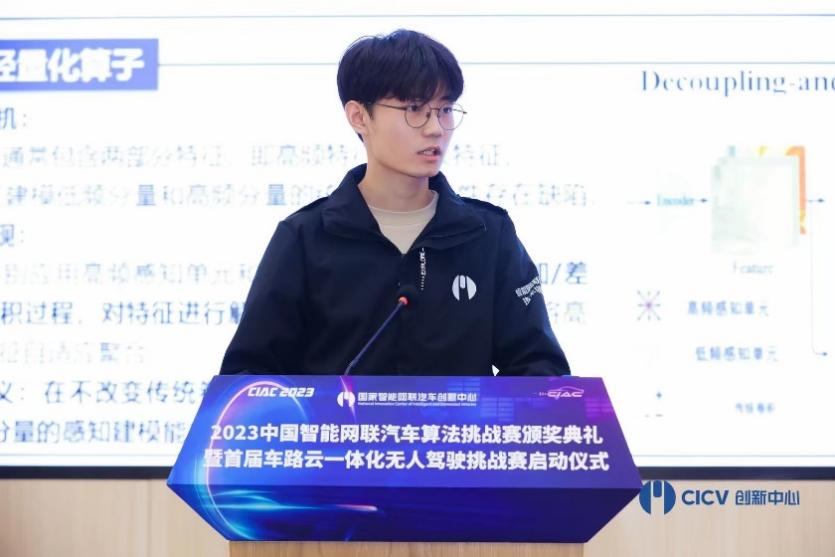 指导教师刘占文教授在2024年的1月17日颁奖典礼上,代表获奖团队在大会上进行了汇报。应邀派出团队4名学生,参与由国家智能网联汽车创新中心(简称国创中心)主办的第二期CICV车路云一体化产教融合算法训练营。