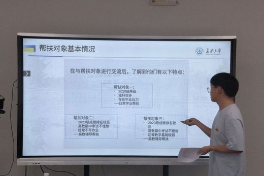 两位高年级帮扶志愿者代表分享帮扶经验,结合帮扶经历,从帮扶问题、方法等方面展开讲解,强调要针对不同帮扶对象制定对应的帮扶计划,以“交流+监督+反馈”的长效机制保证帮扶效果。新生志愿者代表分享了自己的帮扶规划,以“我为同学做实事”的初心,践行自己的入党的初心与使命。