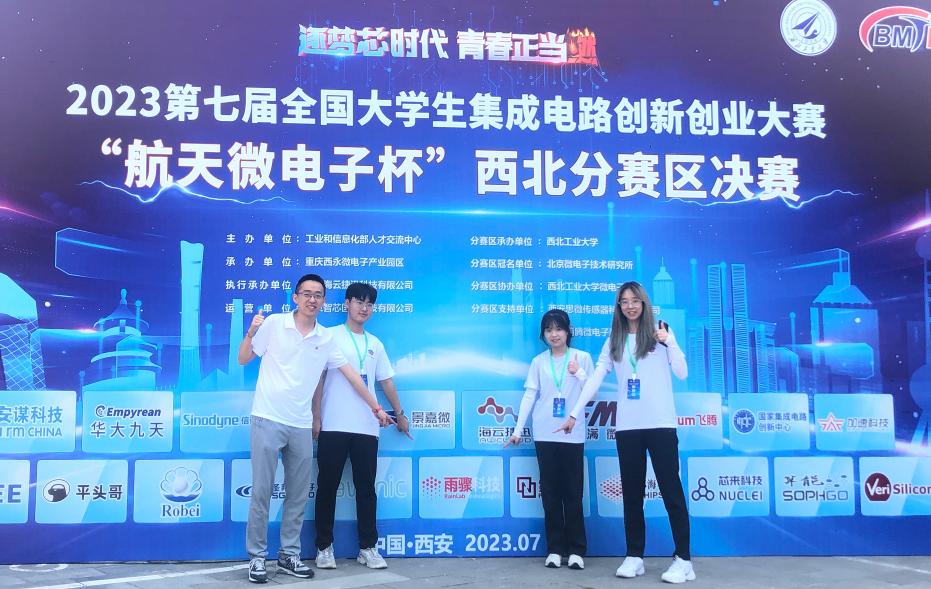 2023年7月24-26日,第七届全国大学生集成电路创新创业大赛“航天微电子杯”西北赛区决赛及闭幕式在西北工业大学长安校区举办。我院计算机科学系教师马峻岩指导的两支2021级本科生参赛队,经过现场激烈的答辩和作品展示,荣获西北分赛区三等奖2项。本届比赛共有来自陕西、甘肃、山西等33所高校,637支队伍,超1800人参赛,经过层层比赛,最终西北分赛区决赛入围团队241个。