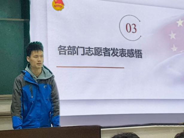 各部门志愿者代表发言,席典鉴、樊是颉、刘志豪、武利伟分别讲述了半年来在青媒的成长与收获,对学长学姐的悉心教导表示感谢,同时表达了自己对未来工作的信心与热情,希望能在青媒发光发热。