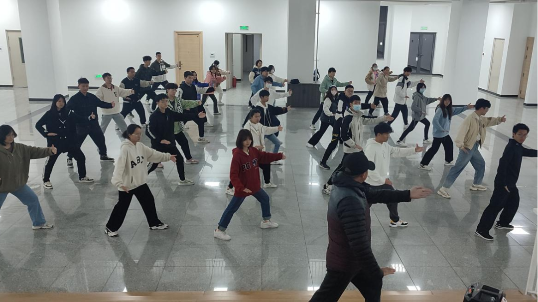 沙鹏引导参赛队员们仔细琢磨招式,改进动作细节,分析训练不足之处的同时帮助大家不断调整太极拳动作。训练期间,文体协指导老师杨建华到现场了解训练情况,为参赛队员加油鼓劲,在同学们刻苦训练、默契配合下,太极拳队伍不断进步,师生合力共同演绎出一段段精彩的表演。
