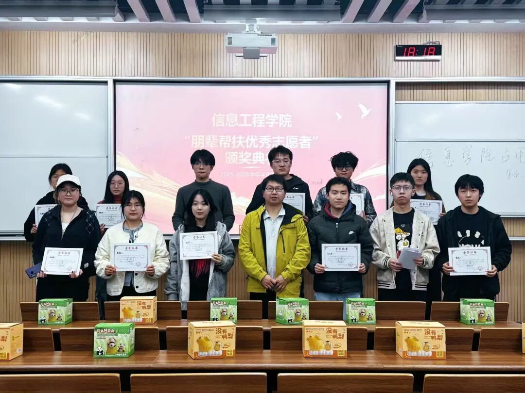 为表彰学业帮扶工作中的优秀志愿者,弘扬互助共进的优良学风,3月29日,信息工程学院于WX2105教室隆重召开学业帮扶优秀志愿者表彰活动。学院何鋆老师出席本次活动,与全体优秀志愿者齐聚一堂,共同见证荣誉时刻。
